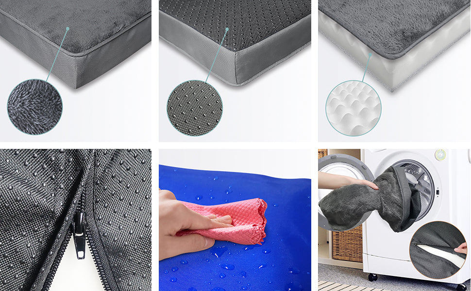 - The mattress is made of memory foam with a wave structure that evenly distributes the pet's weight not only help to relieve joint and muscle pain, but also providing optimal support for your pet's spine. What's more, the extra soft fleece plush fabric offers cozy comfort combined with a waterproof 300D oxford fabric that makes the cushion durable.