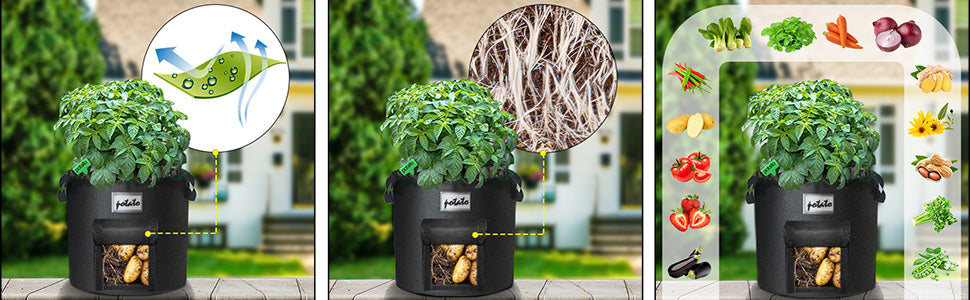 - Non woven material helps to better prevent root rot caused by excessive water and keep plant root breathable and healthy growth.
