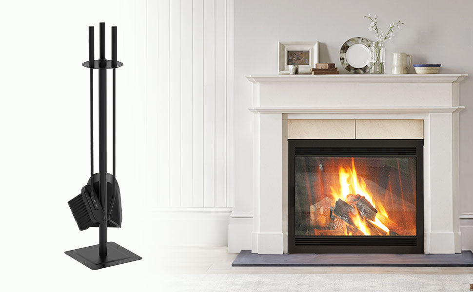 - 4-Pieces Fireplace Tool Kits: The fireplace tools set provides all necessary accessories: 1 x base, 1 x broom, 1 x shovel, 1 x poker.