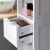 - PREMIUM MATERIALS: Crafted from high-quality MDF, this tall cabinet boasts a smooth, pleasant-to-the-touch surface. The water-resistant material and supportive feet guard against moisture, ensuring easy cleaning and long-lasting use. Moreover, the magnetic doors facilitate effortless opening and closing.